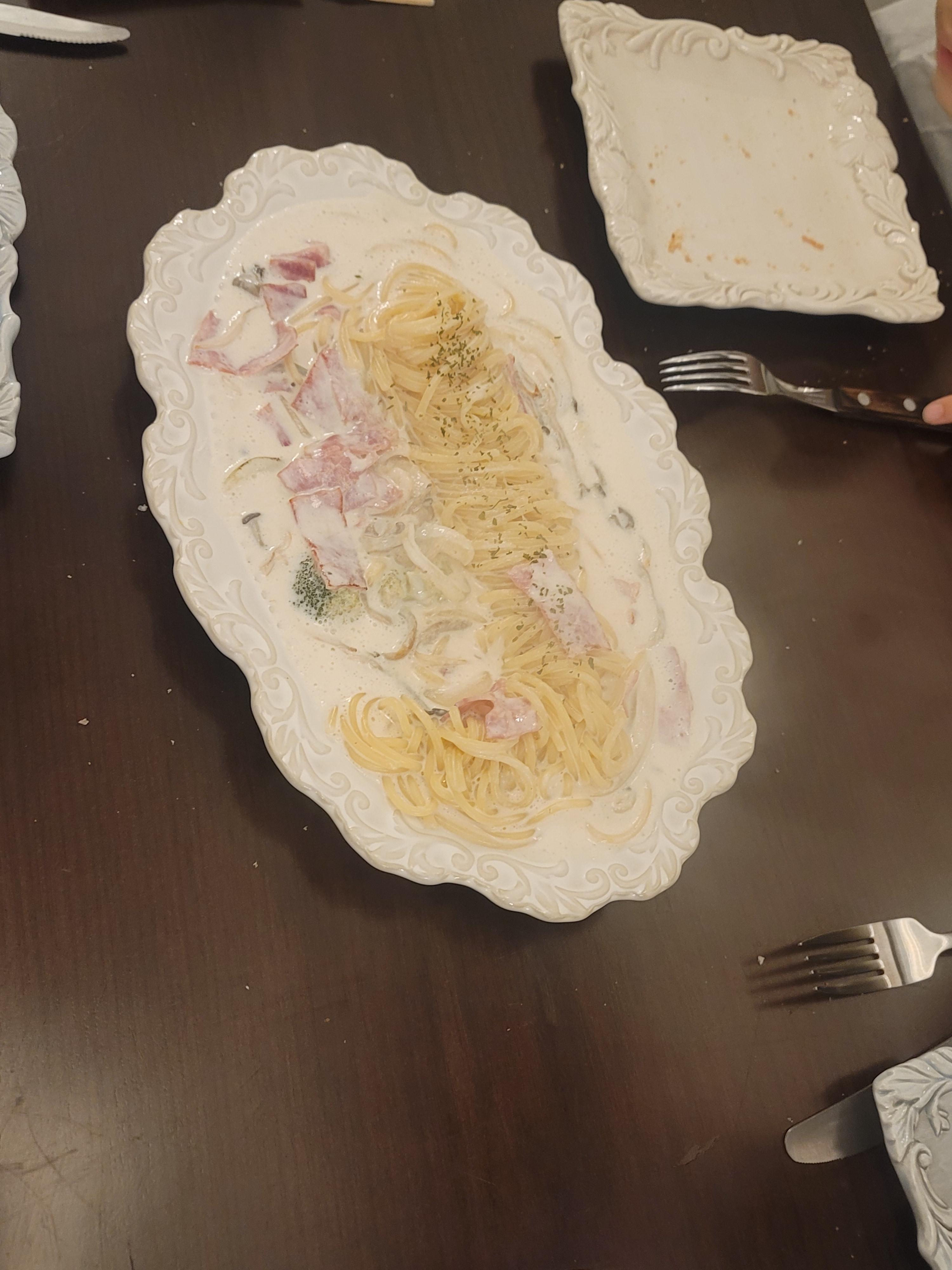 아이들에게 주려고 시킨 까르보나라가 먼저 나왔습니다.